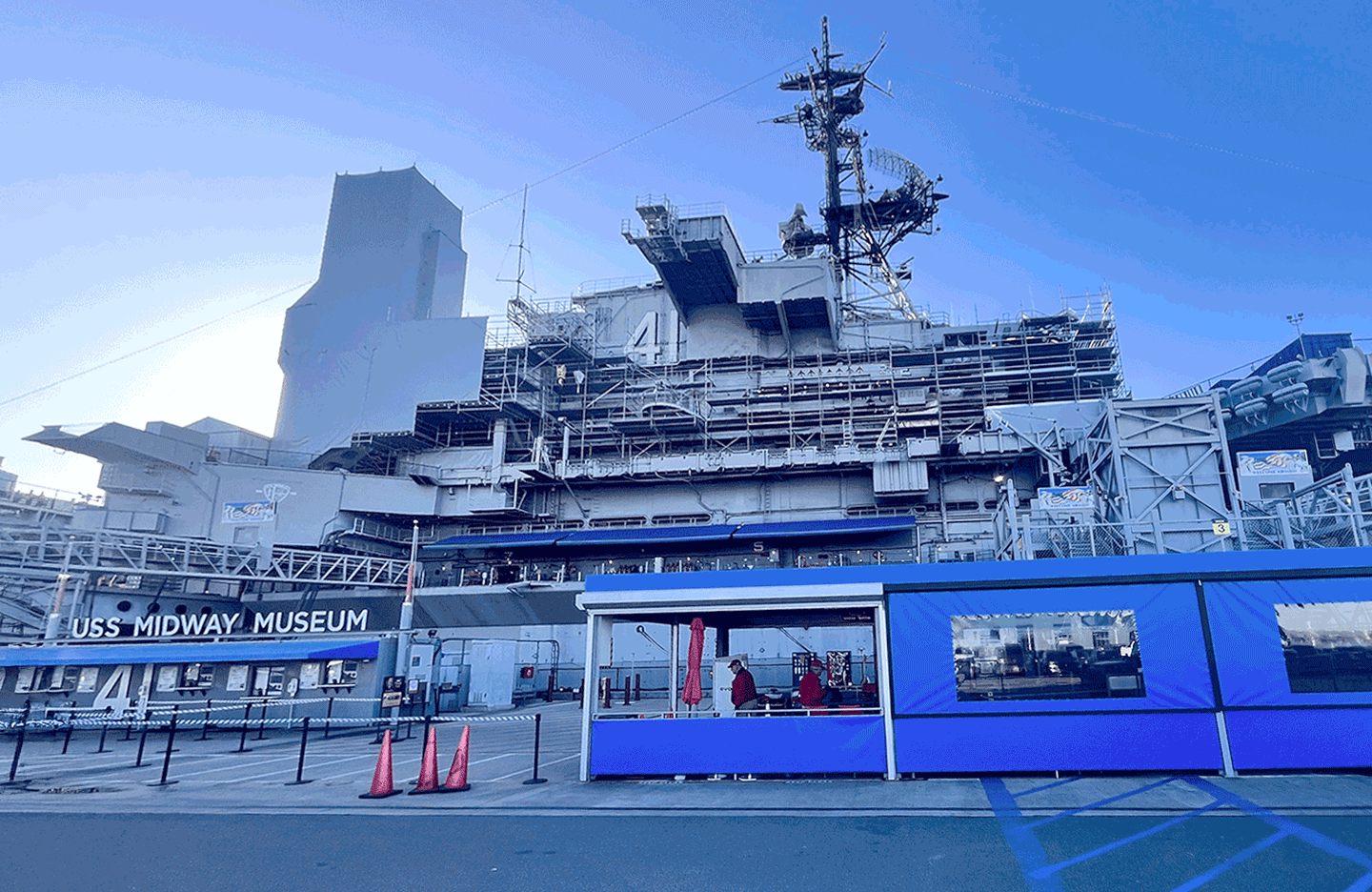 - USS Midway - là hàng không mẫu hạm có hải trình phục vụ 47 năm, là mẫu hạm phục vụ lâu nhất của quân đội Mỹ trong thế kỷ 20, từ cuối chiến tranh TG II (WWII) cho đến cuộc chiến giải phóng Kuwait 1991, trước khi " về hưu" vào năm 1992. Trong đó, đáng nhớ nhất là USS Midway đã từng tham gia 2 cuộc chiến: chiến tranh Vietnam và cuộc chiến vùng vịnh (bão sa mạc) 1991. Quý khách chụp ảnh bên ngoài.