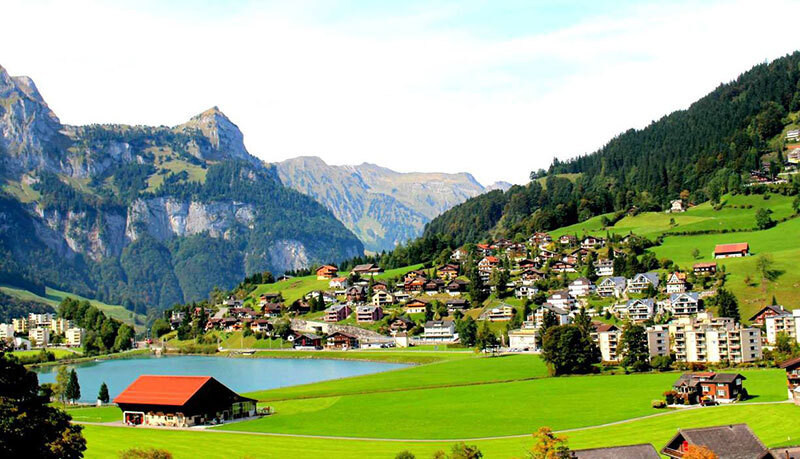 - Engelberg: Thành phố “Núi thiên thần”, nơi có núi tuyết Titlis nổi tiếng. Thành phố Engelberg chỉ có khoảng vài trăm căn nhà nhưng mỗi căn nhà đều có lối kiến trúc độc đáo và mang một vẻ đẹp khác nhau. Người ta nói mùa thu mà đi qua đây giống như đi qua cõi thiên đường bởi sự kết hợp hài hòa, tinh tế giữa thiên nhiên và con người, giữa những thảm cỏ xanh dưới chân dãy Alps hùng vĩ với những ngôi nhà gỗ sồi nằm bình yên bên sông.