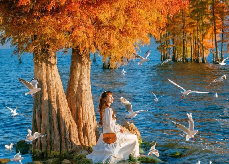 Trưa: Đoàn dùng cơm tại nhà hàng địa phương, Sau đó đoàn tiếp tục tham quan: Lam Nguyệt Cóc, Cam Hải Tử, Sông Bạch Thuỷ Hà, Ngọc Thuỷ Trại… (không gồm phí đi xe điện ~ 60RMB).