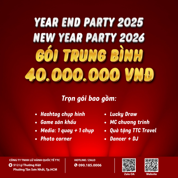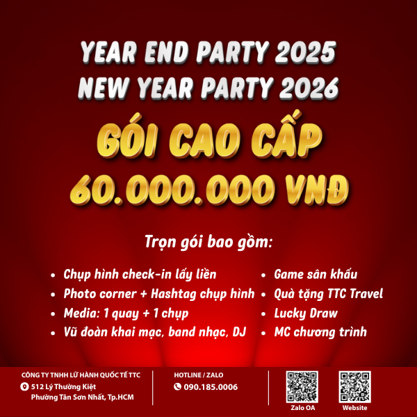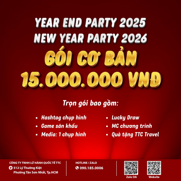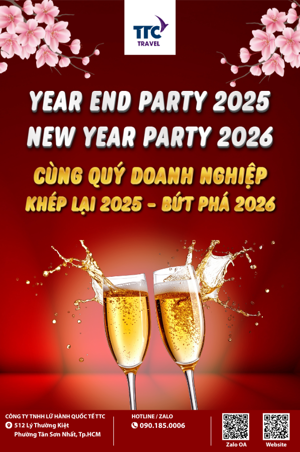 TTC Travel trân trọng giới thiệu các gói tổ chức YEAR END PARTY 2025 - NEW YEAR PARTY 2026, thiết kế linh hoạt theo quy mô và ngân sách doanh nghiệp.